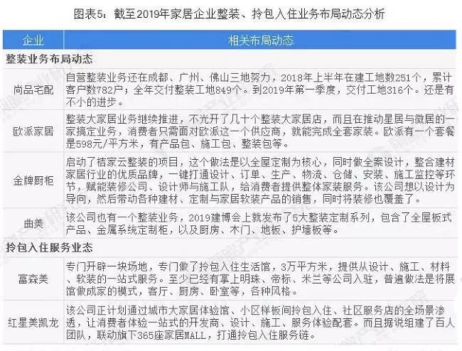 在比较长的一段时间里,当时主要立足于自己的优势产品,比如全屋柜类定制、全屋木门定制、全屋瓷砖定制等,整个表现是围绕单品做文章,力图在某个细分品类里打造爆款。而2019年的情况有所变化,部分公司做了调整,开始向全屋配齐扩张,不光是做自己的优势产品,还可能自建生产线、投资某些公司,继续扩大品类,走大家居路线的全屋定制,把柜类产品、软装等全部搞定。